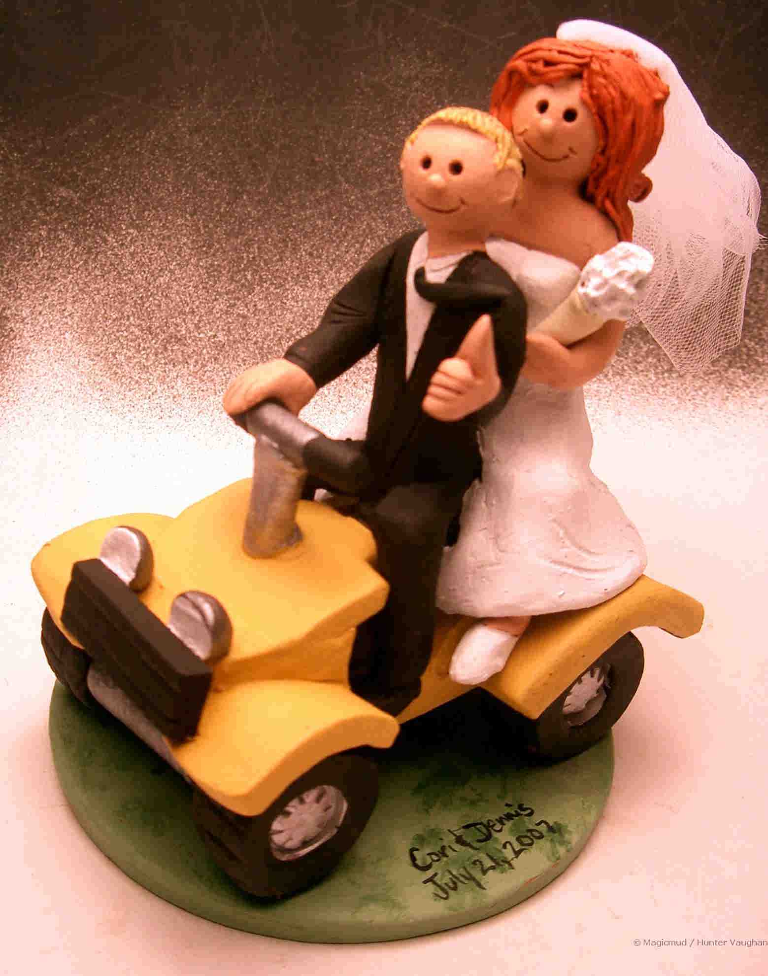 A totally  unique wedding cake topper custom made for a couple who love to ride an ATV.