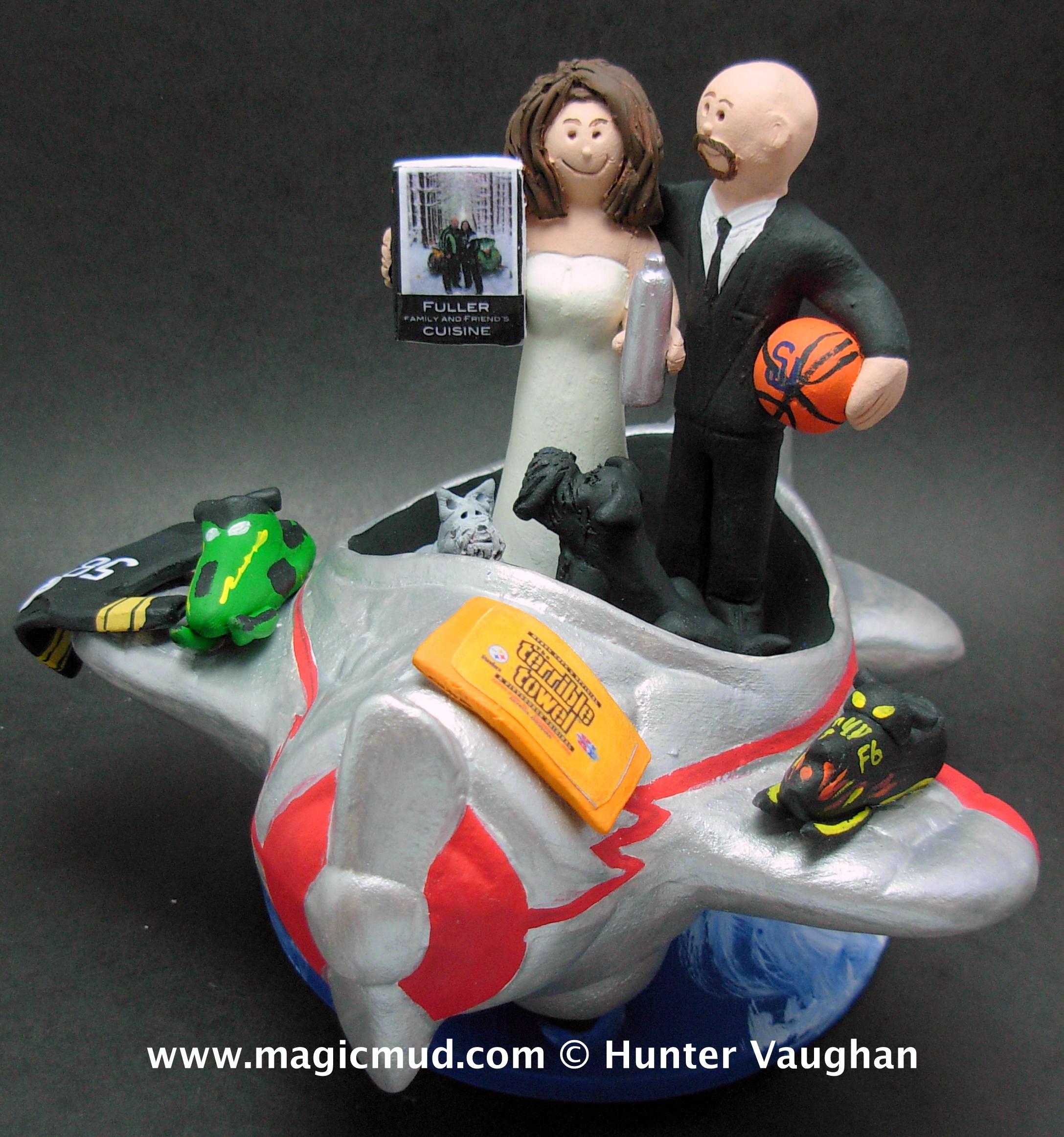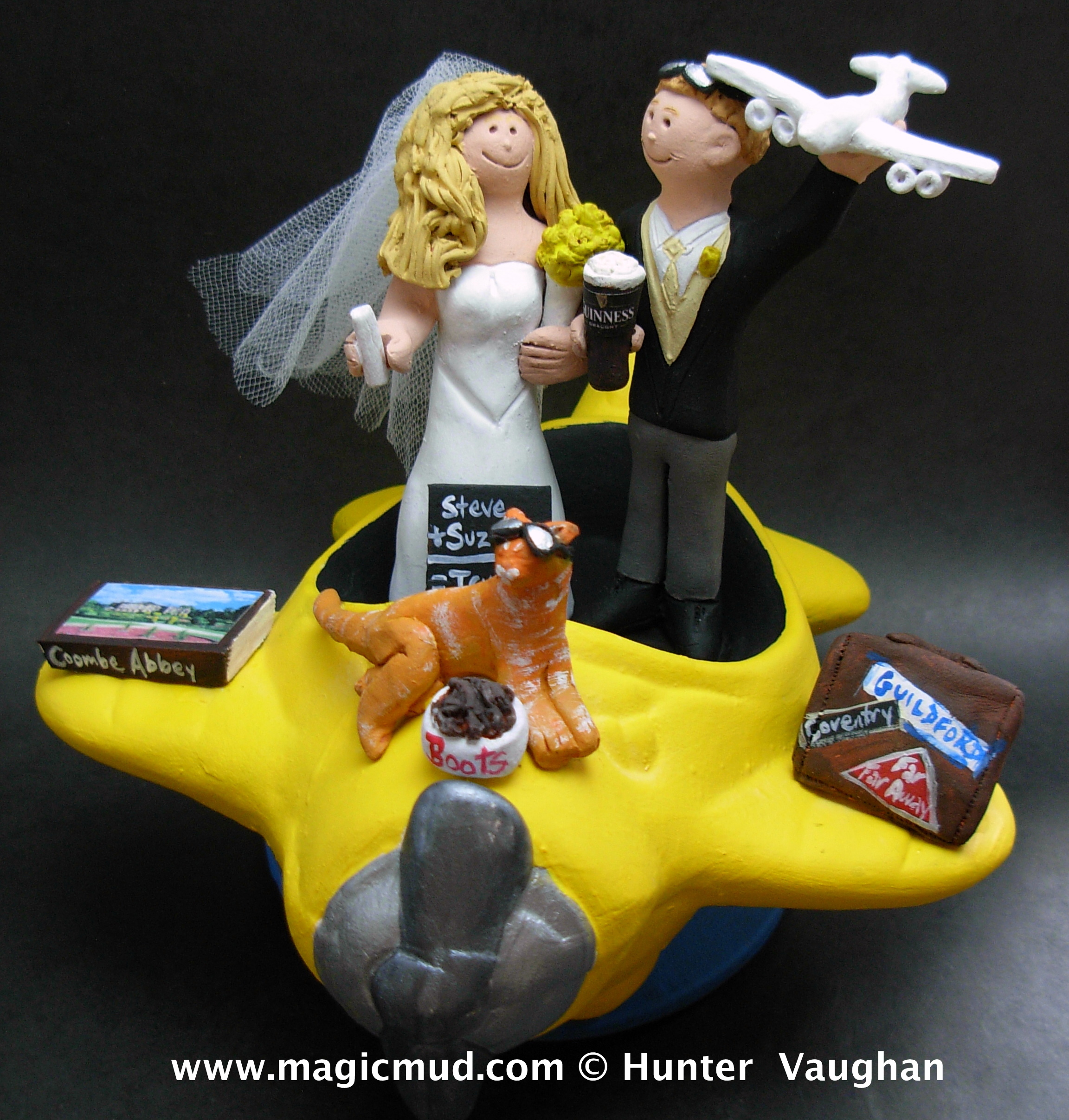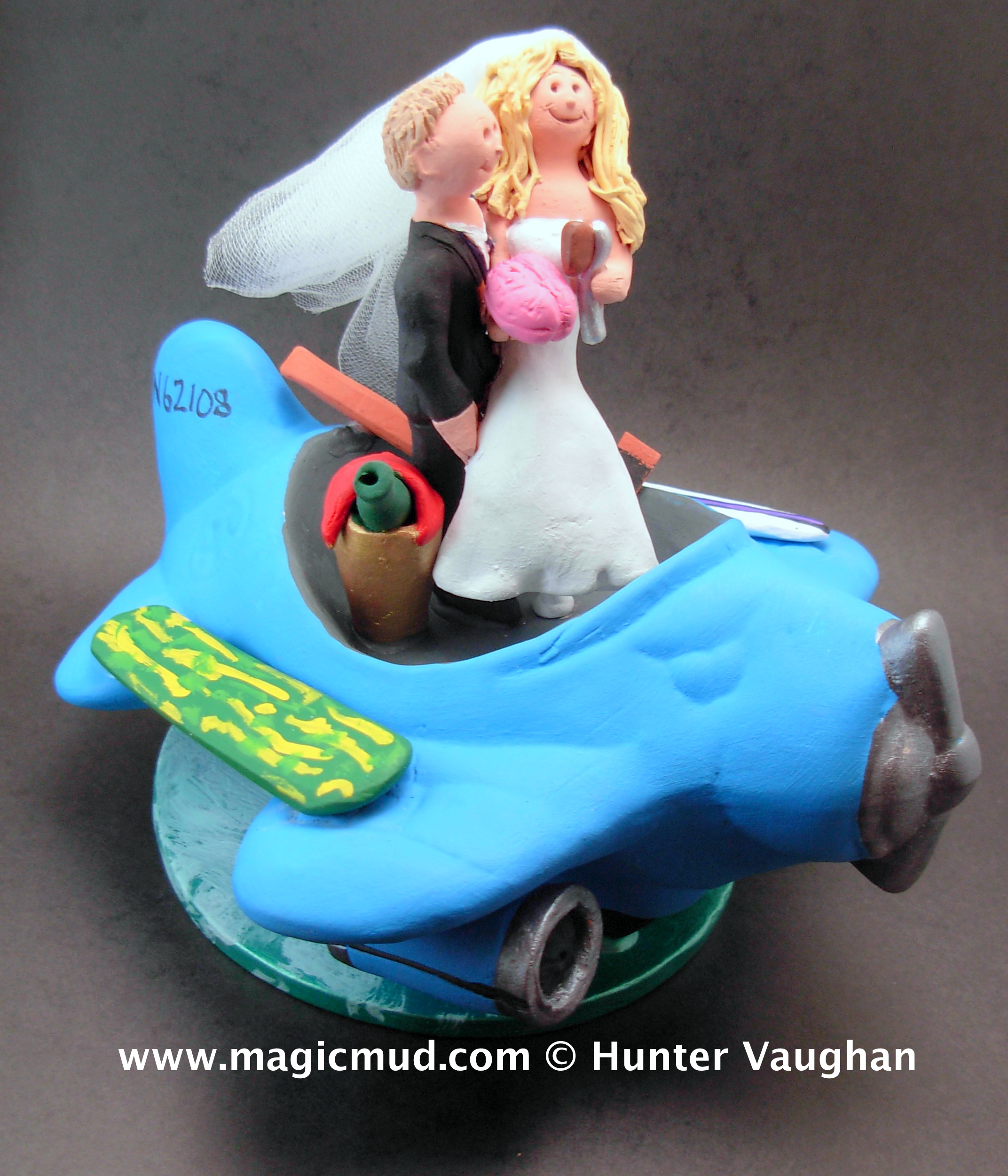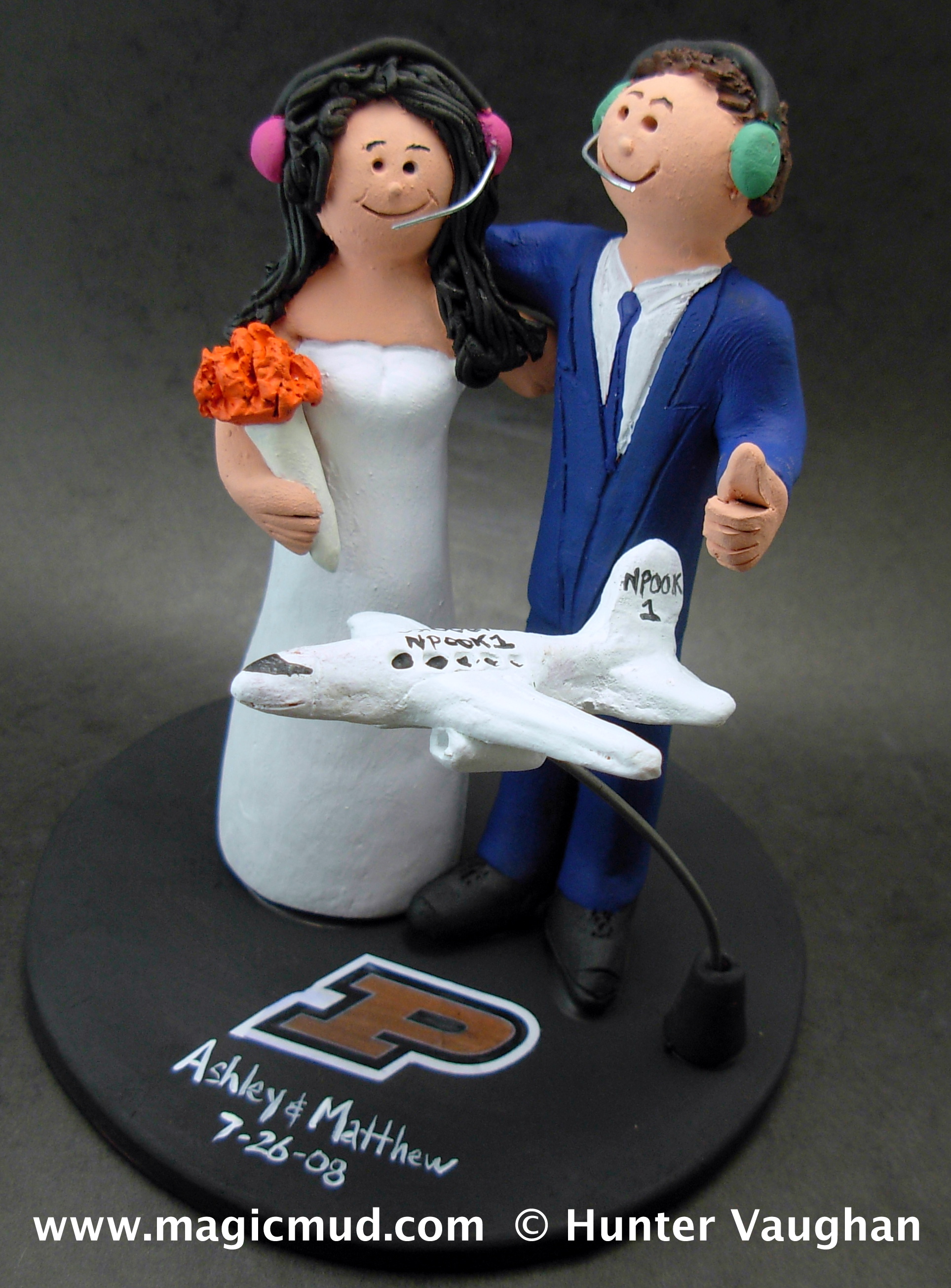 Airplane and Pilot Wedding Cake Toppers $235-250 Totally custom made for you. 1 800 231 9814 magicmud@magicmud.com