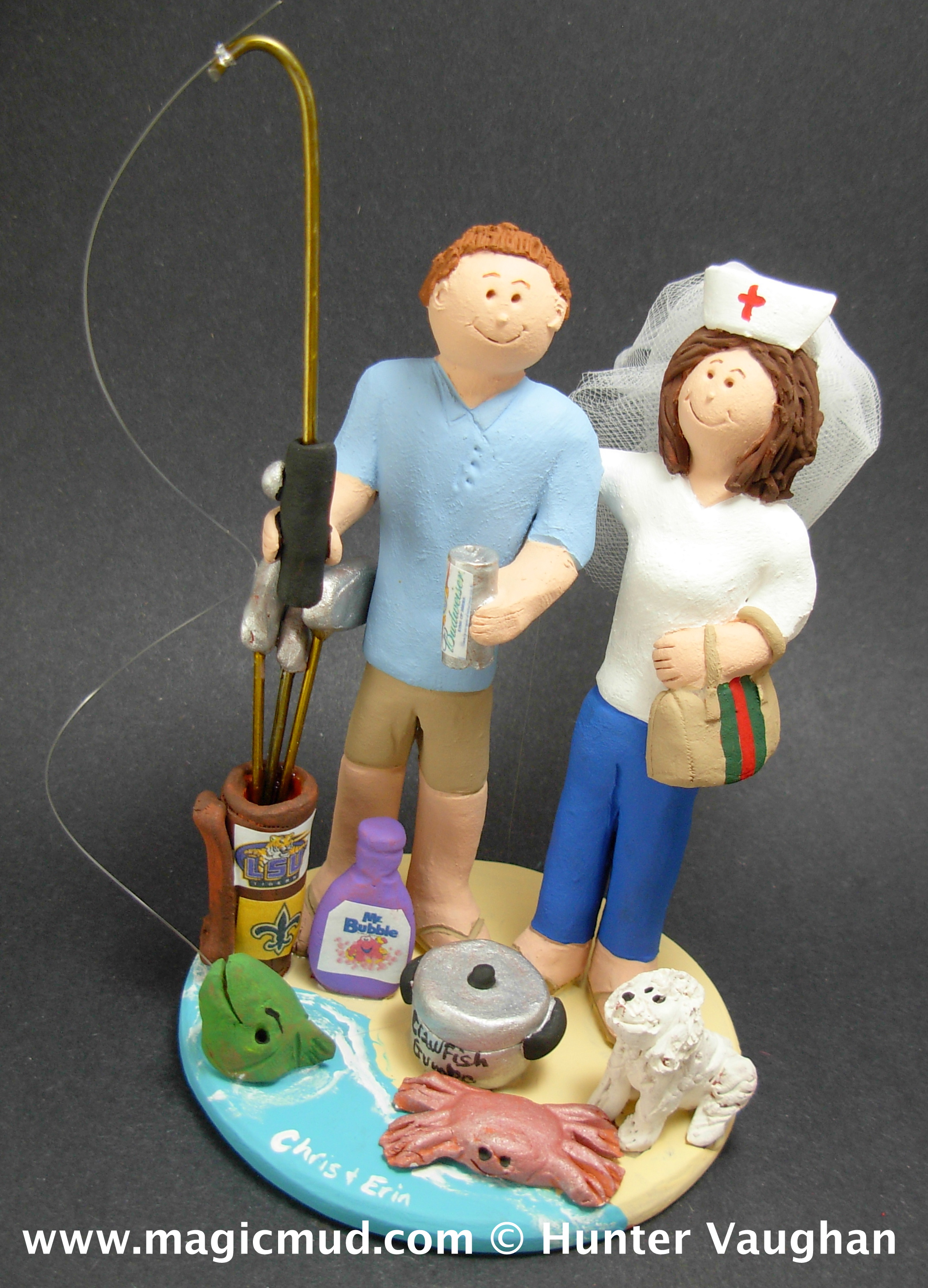 Fishing Wedding Cake Toppers $235-250 Totally custom made for you. 1 800 231 9814 magicmud@magicmud.com