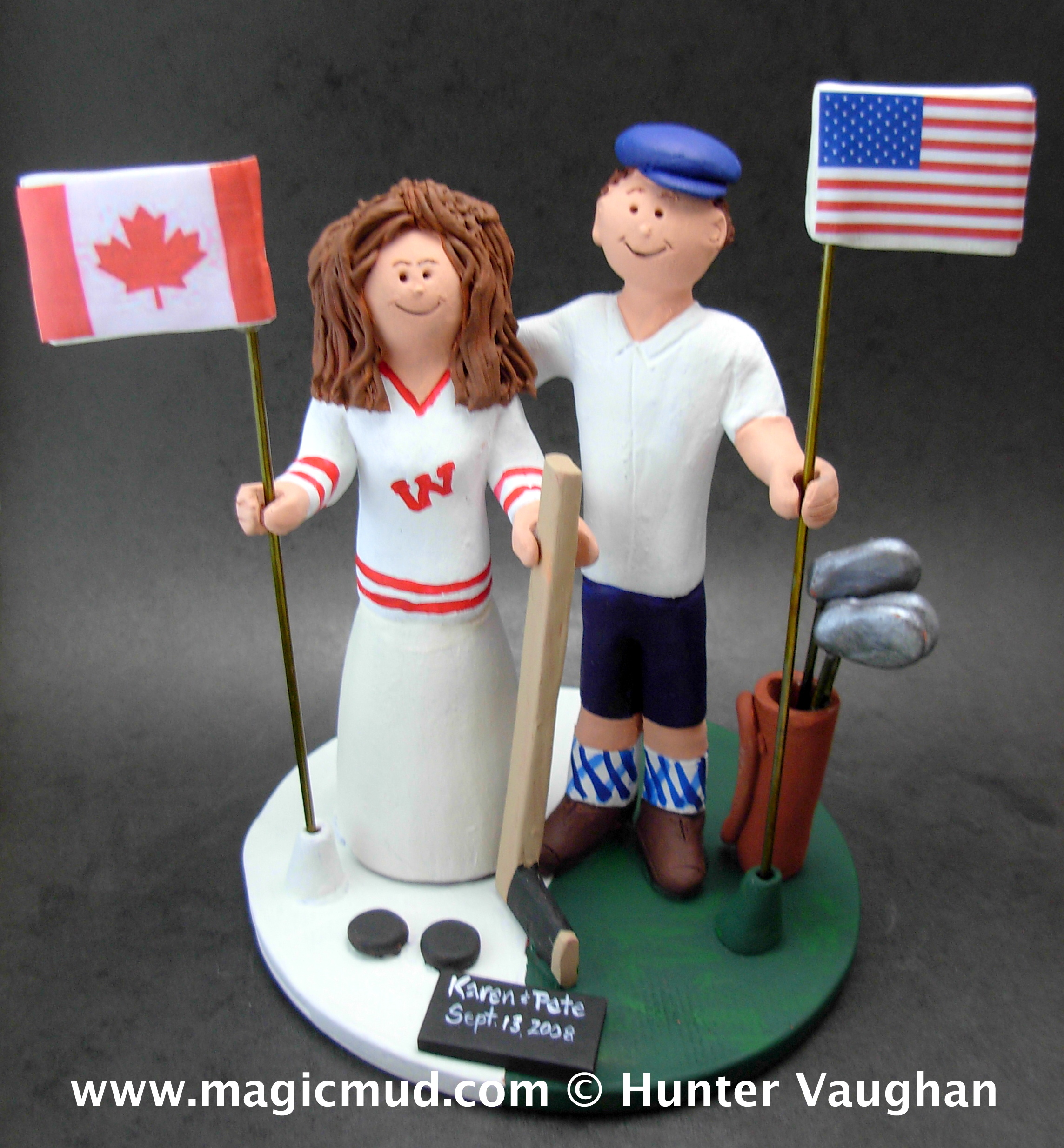 Wedding Cake Toppers with Flags $235-250 Totally custom made for you. 1 800 231 9814 magicmud@magicmud.com
