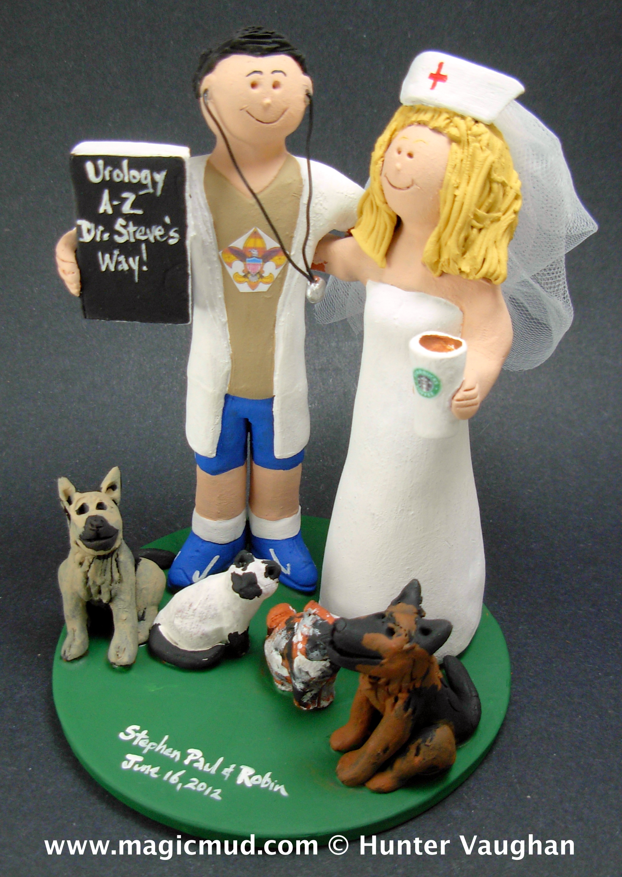 Nurse Wedding Cake Toppers $235-250 Totally custom made for you. 1 800 231 9814 magicmud@magicmud.com