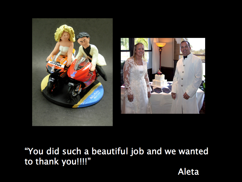 Home Wedding Cake Toppers Custom Wedding Cake Topper Blog Wedding Cake Topper Videos Wedding Cake Topper Order Form Testimonials Custom-Made Figurine Gift Gallery Custom Figurine Order Form